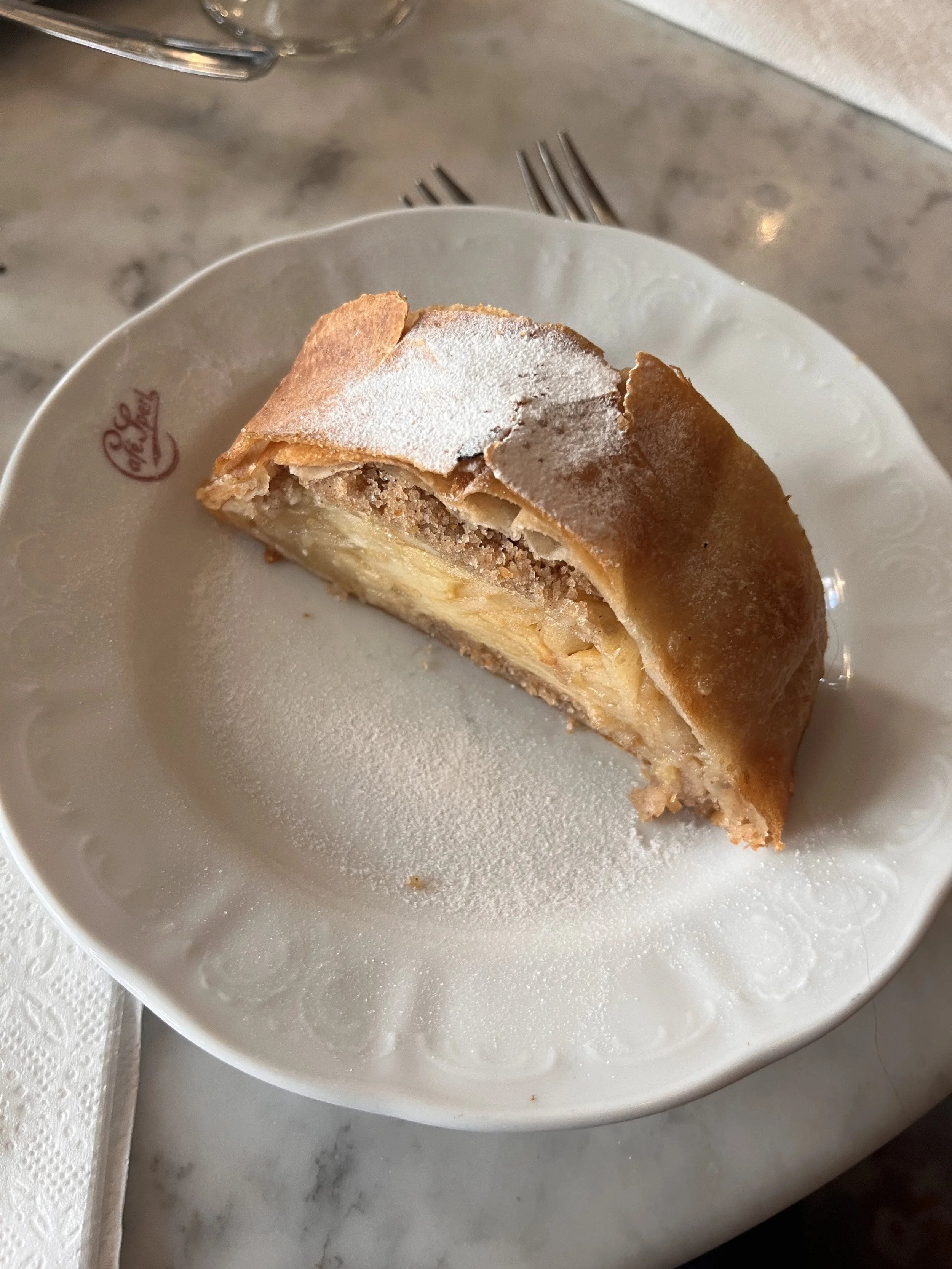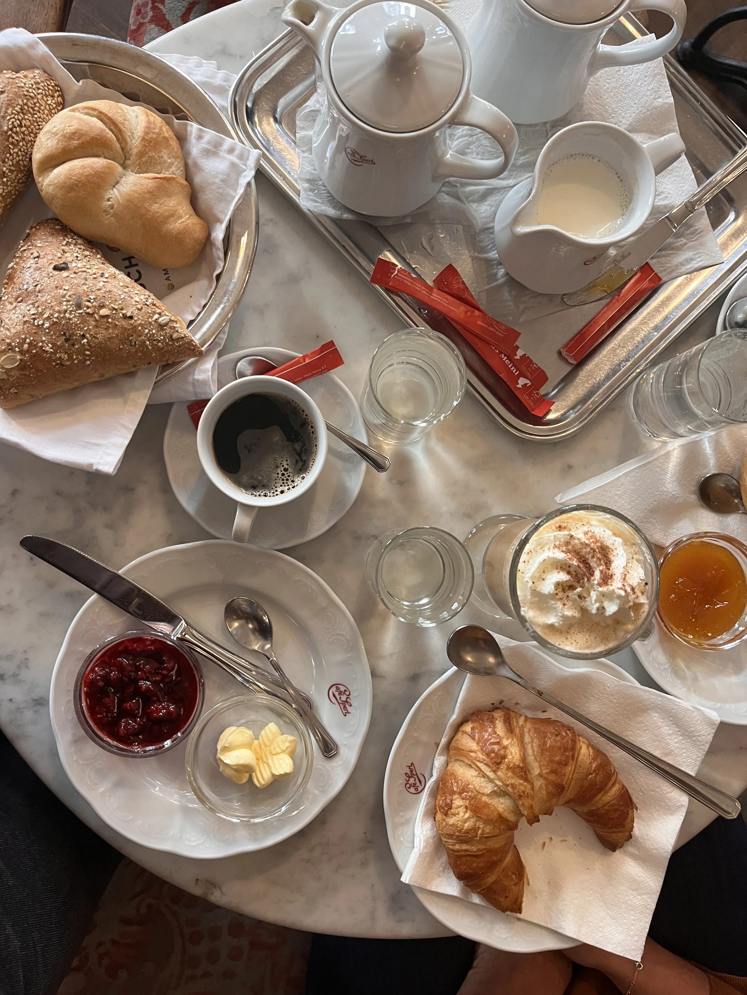 I recently made a trip to Austria that opened my eyes to all the delicious options that viennoiseries have in store. Typically skewing toward the sweet end of the breakfast realm, viennoiserie has become a huge part of Vienna’s culture—especially with their coffee house culture. A cup of coffee and a quick bite is how you start your day. With over 600 coffee houses to choose from, you’re set up for a pretty delightful way to start the day. A 20th-century Austrian writer, Stefan Zweig, described the Viennese Coffee House culture as “actually a sort of democratic club, open to everyone for the price of a cheap cup of coffee, where every guest can sit for hours with this little offering, to talk, write, play cards, receive post, and above all consume an unlimited number of newspapers and journals.” You can typically find small food dishes like sausages, eggs, breads as well as desserts, cakes, and tarts, like Apfelstrudel, Millirahmstrudel, Punschkrapfen, and Linzer torte on these menus. Out of those hundreds of coffee houses, I made it to Cafe Demel, Cafe Sperl and Cafe Eiles. The most well-known of these coffee houses in the city is Cafe Central. These coffee houses have a profound influence on Vienna’s culture and hold a lot of history within their walls.
