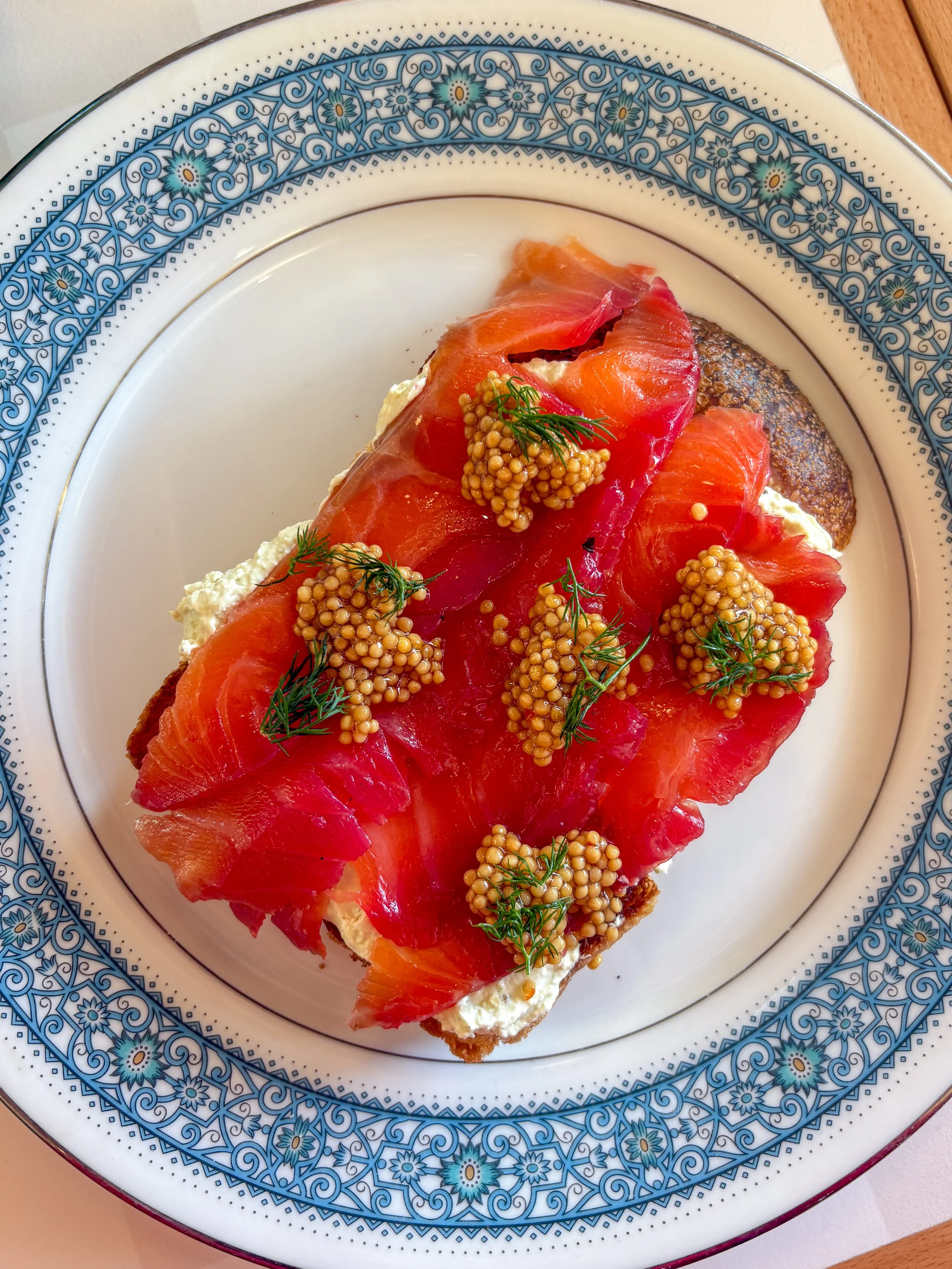 Gravlox toast, a special, with house beet-cured salmon on homemade milk bread